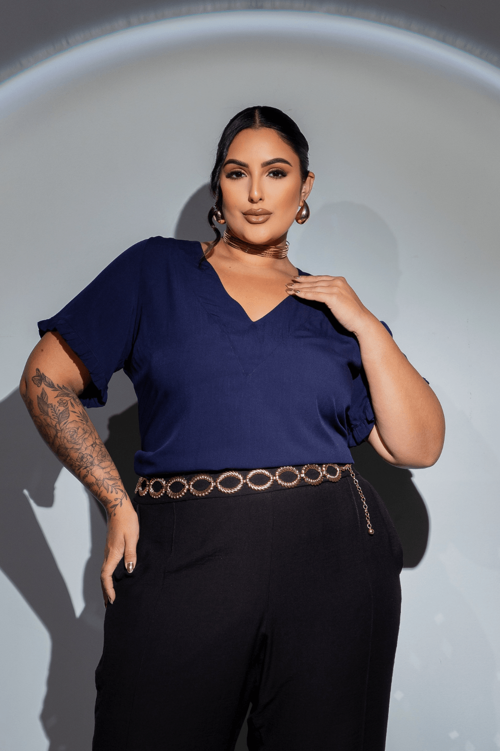 Blusa Babado Com Amarril Plus Size MARINHO