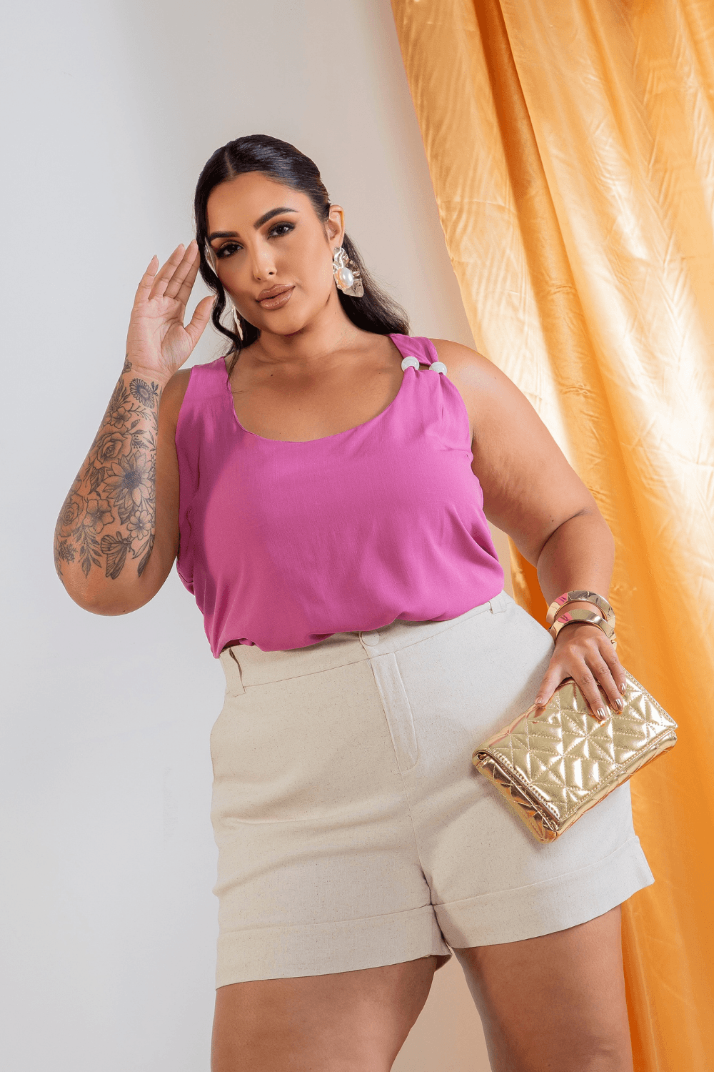 Regata Viscolinho Com Aplicação Pedras Plus Size PINK
