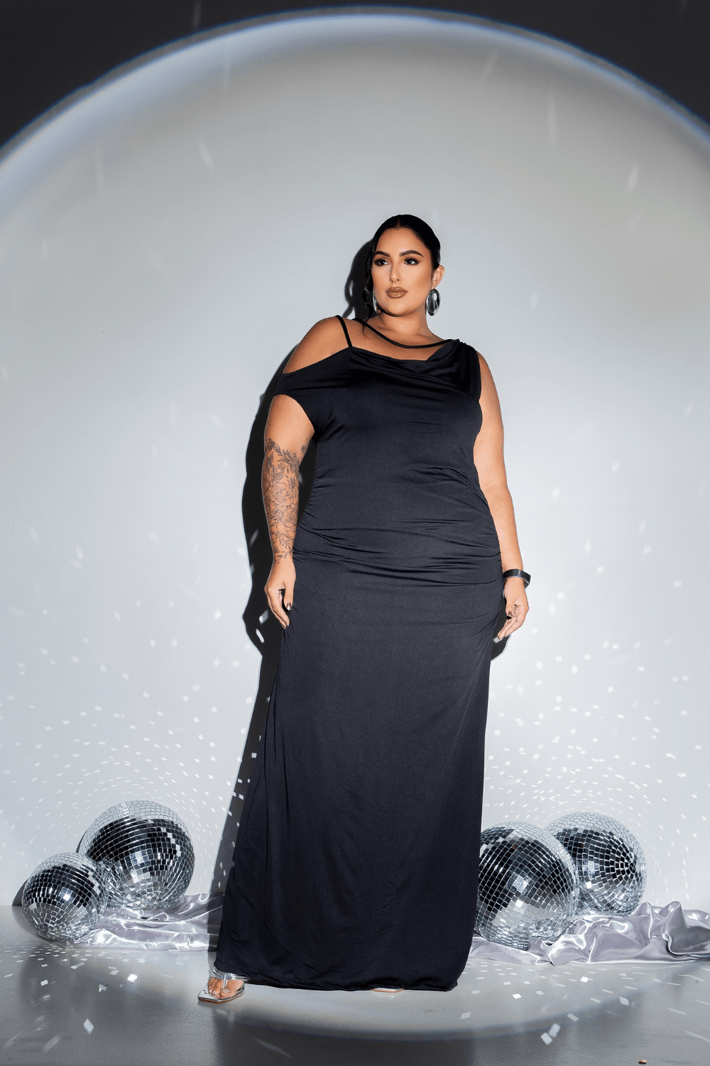 Vestido longo com design delicado e envolvente, que valoriza a silhueta com elegância. Possui decote degagê, marcado por uma suave ondulação do tecido que confere charme e sensualidade na medida certa. As alças finas e ajustáveis trazem leveza e um toque feminino ao visual. Na saia, o leve drapeado formado por pregas sutis adiciona movimento e fluidez, criando uma peça elegante, romântica e perfeita para ocasiões especiais ou produções refinadas do dia à noite.