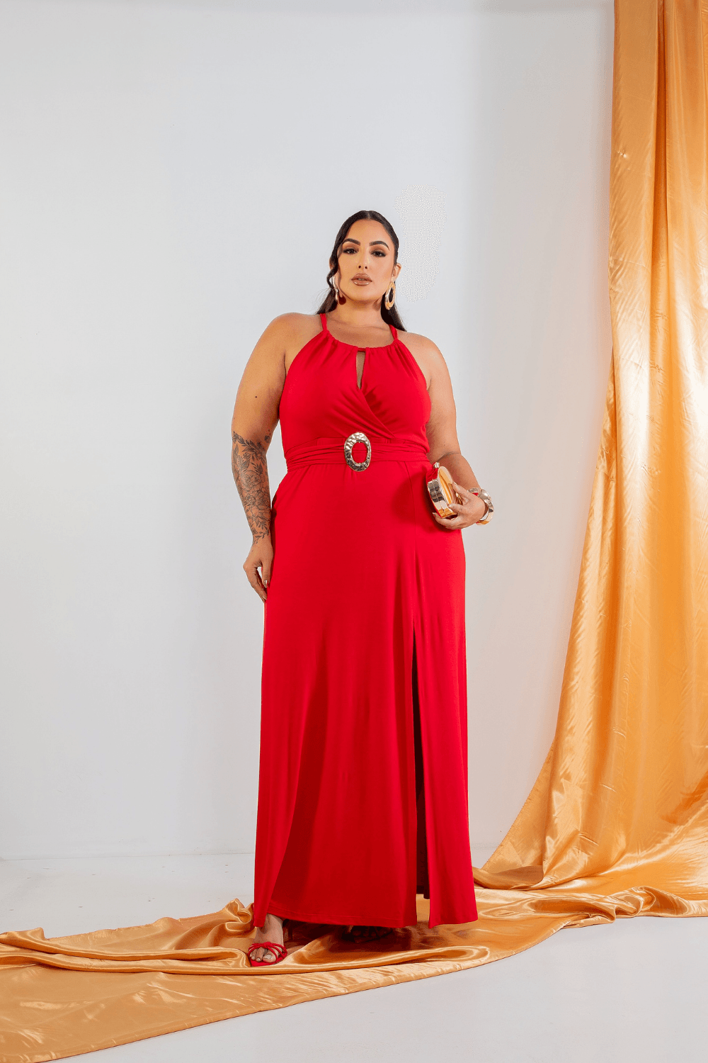 Vestido Longo Frente Única Plus Size VERMELHO